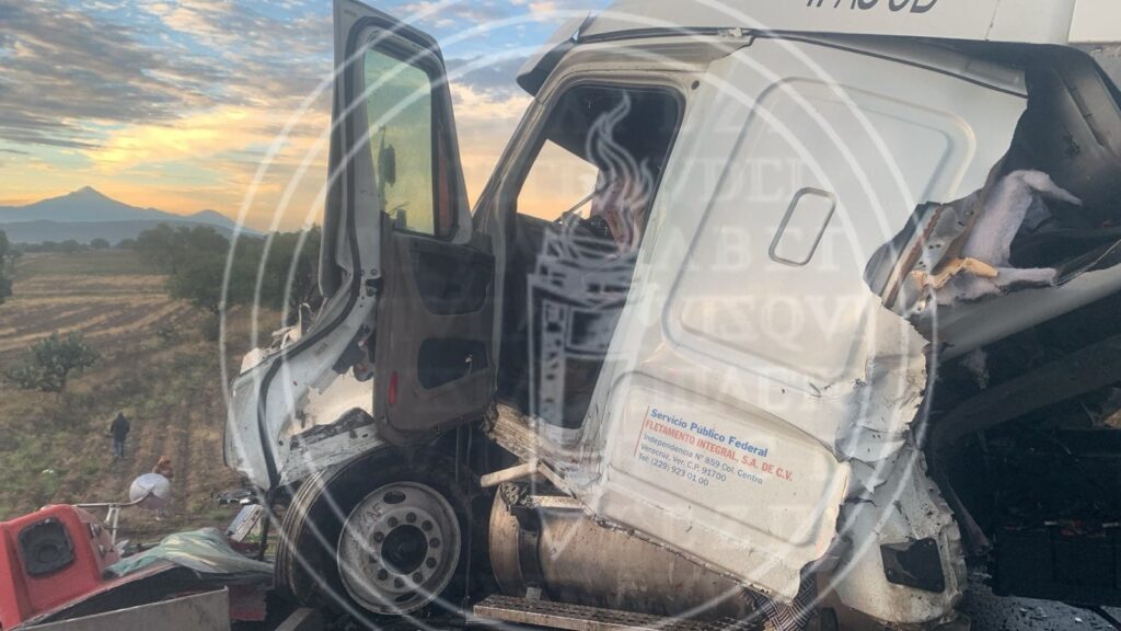 Choque frontal mortal en la Amozoc-Perote: conductor de tortón muere prensado