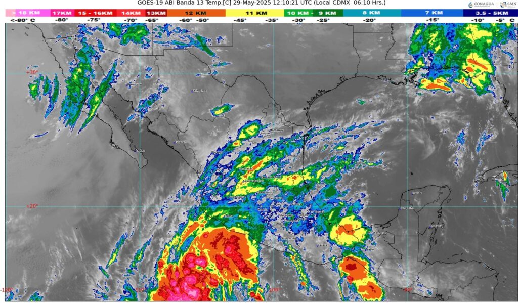 Hoy jueves, se prevé que el ciclón tropical Uno-E se intensifique mientras se desplaza paralelo a las costas de Michoacán, Colima y Jalisco, sus desprendimientos nubosos originarán lluvias con chubascos en el noroeste, occidente y sur del país, con lluvias puntuales muy fuertes en Guerrero y puntuales fuertes en Jalisco, Colima y Michoacán.