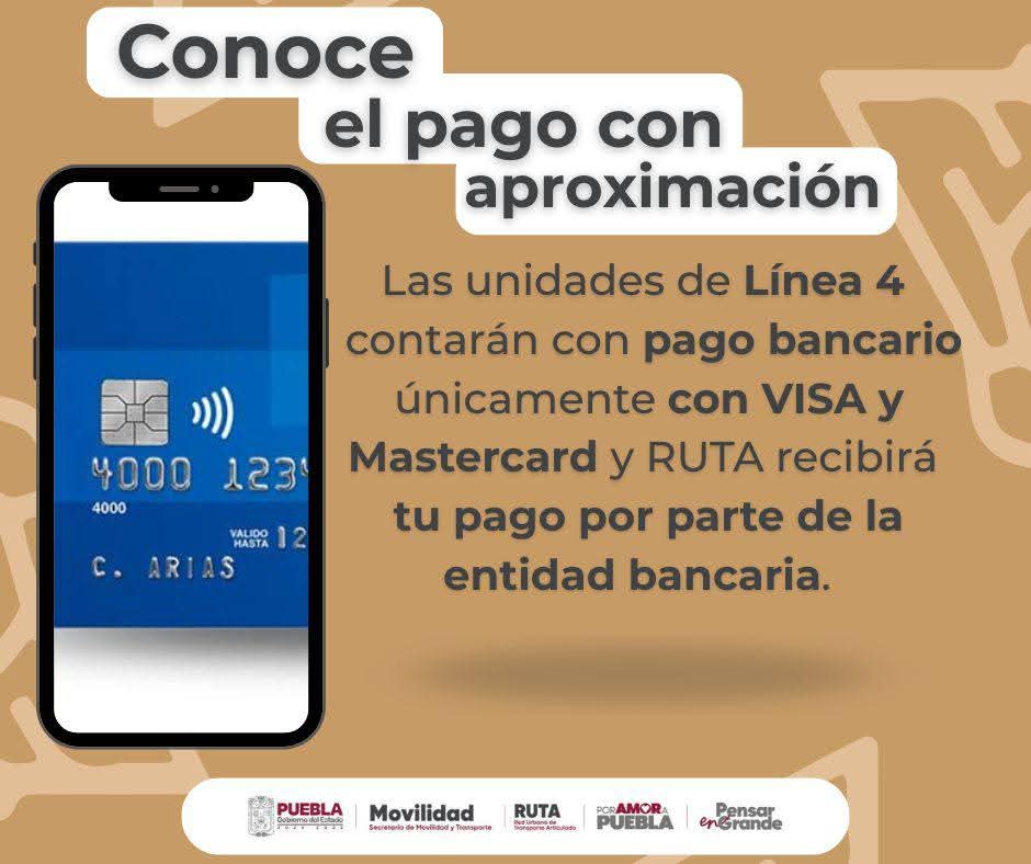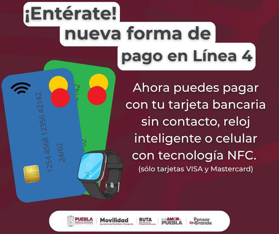 Se informa que, en los próximos días, en todas las unidades de la Línea 4 se habilitará el cobro a través de tarjeta bancaria sin contacto de débito o crédito (VISA o Mastercard), también llamada contactless, o de dispositivos móviles, como teléfonos o relojes inteligentes que cuenten con el pago digital por aproximación.