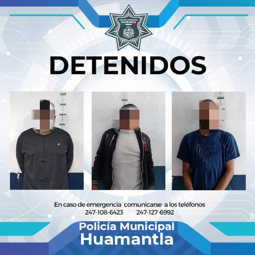 Como parte de los recorridos de vigilancia preventiva que realiza la Policía Municipal de Huamantla, se logró el aseguramiento de tres hombres, en distintos puntos del municipio, por alterar el orden público y consumir sustancias nocivas para la salud en la vía pública.