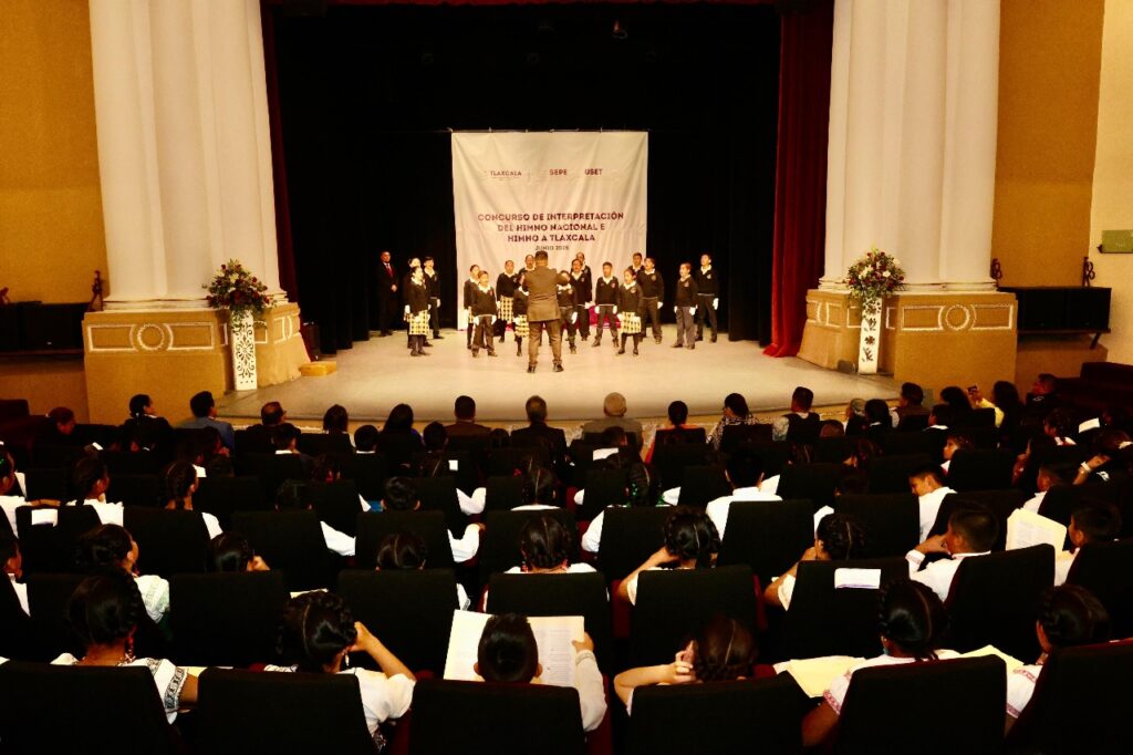 Con el objetivo de reafirmar el respeto por los símbolos patrios entre la comunidad de educación básica, la Secretaría de Educación Pública del Estado y la Unidad de Servicios Educativos del Estado de Tlaxcala (SEPE-USET), a través del departamento de Educación Cívica, celebró el concurso de interpretación de Himno Nacional Mexicano e Himno a Tlaxcala 2025, con la participación de primarias y secundarias públicas y privadas.
