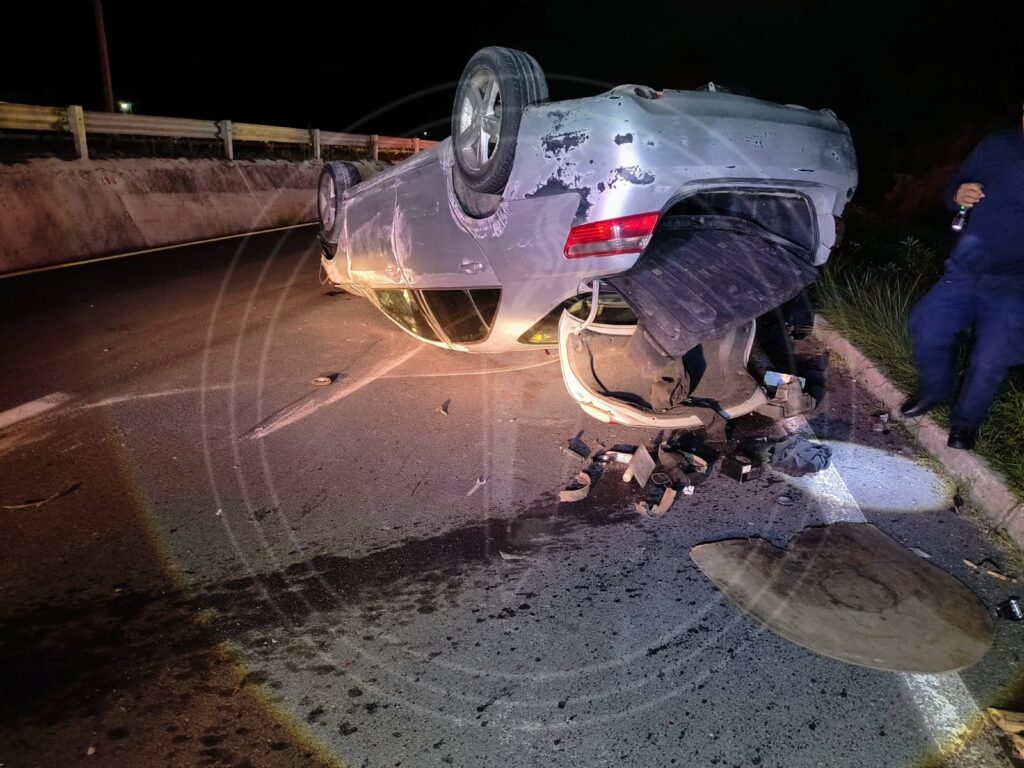 Dos vehículos chocaron y uno de ellos terminó volcado dejando a una persona herida pero no debemos gravedad.