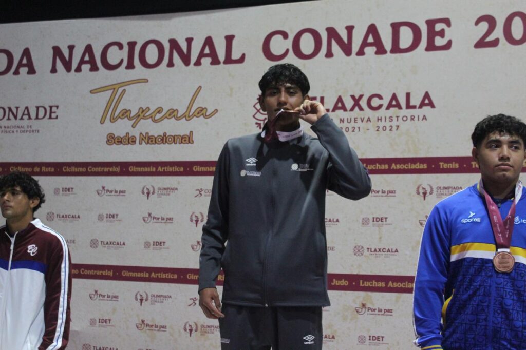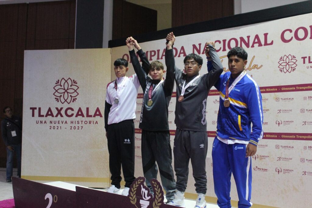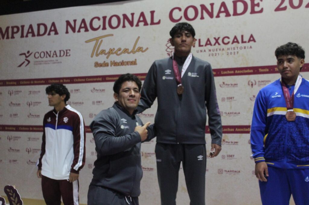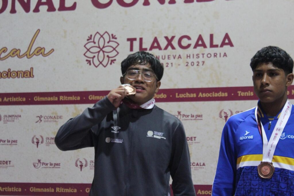 Los gladiadores tlaxcaltecas del estilo libre, Yovani Ponce Chantes, de la categoría infantil división 68 kg., y Jotshua Jacob Pacheco Ponce, de la categoría cadete en la división 80 kg., obtuvieron la medalla de bronce en su participación en la Olimpiada Nacional CONADE 2025; con estas preseas, el estado cerró con nueve metales como parte de su desempeño en la disciplina de luchas asociadas.