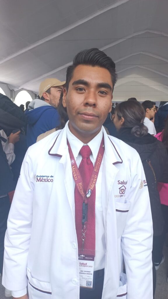 Jovanny Mendoza Onofre, médico del programa que pusieron en marcha la presidenta Claudia Sheinbaum Pardo y la gobernadora Lorena Cuéllar Cisneros este sábado, destacó que pondrá todo su empeño para brindar la atención primaria «que requieren los adultos mayores y personas con discapacidad. Con el objetivo de que los pacientes tengan una atención oportuna y de calidad desde la comodidad de su hogar cuando enfrentan problemas de salud y enfermedades crónico-degenerativas», enfatizó.