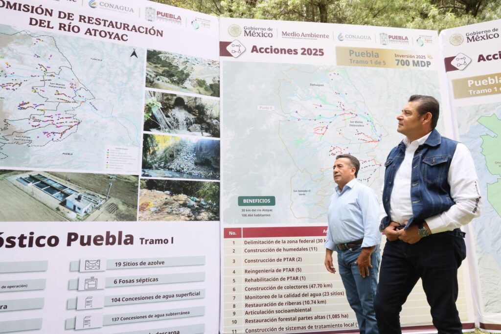 Alineados a la estrategia de la presidenta de México, Claudia Sheinbaum, en defensa del agua como un derecho, con acciones concretas y con bioética social para rescatar el Río Atoyac, el director de la Comisión Nacional del Agua, Efrain Morales, el comisionado presidencial para la Restauración del Río, Alejandro Isauro Martínez Orozco y el gobernador de Puebla, Alejandro Armenta, realizaron una supervisión en Santa Cruz Otlatla, municipio de Tlahuapan, donde nace este afluente.