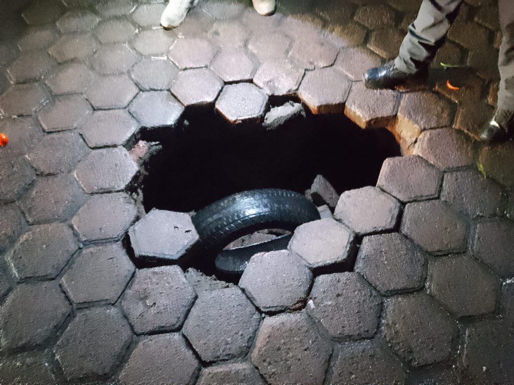 El incidente fue reportado en la calle 10 de Abril, a espaldas de la Casa del Campesino, donde se detectó un hundimiento de aproximadamente 80 centímetros de profundidad y 1.5 metros de diámetro.