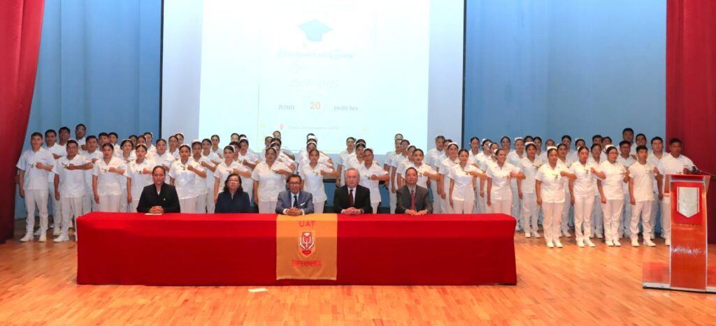 Con la ceremonia del Paso de Luz y Juramento a la Enfermería, que representa un compromiso de hermandad como gremio para ejercer la profesión con sólidas bases éticas, científicas y humanísticas, la Facultad de Ciencias de la Salud de la Universidad Autónoma de Tlaxcala (UATx) llevó a cabo la ceremonia de graduación de 76 estudiantes de la Licenciatura en Enfermería y Obstetricia, generación 2021-2025.