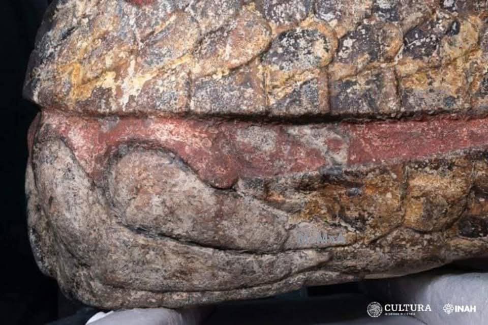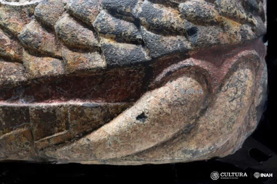 La pieza, de proporciones impresionantes, mide 1.80 metros de largo, casi 1 metro de alto, 85 centímetros de ancho y supera la tonelada de peso. Pero lo que realmente la convierte en un descubrimiento sin precedentes es su estado de conservación: alrededor del 80% de sus colores originales como el ocre, azul, rojo, negro y blanco, permanecen intactos, ofreciendo una ventana vívida a la paleta artística de los mexicas.