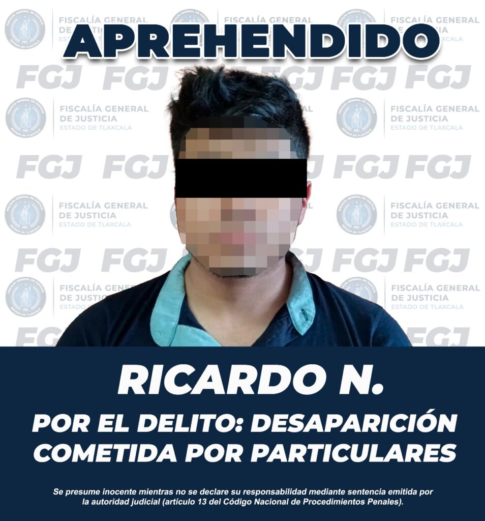 Con la detención de Ricardo N., alias “El Marrano”, en el municipio de Chiautempan, todos los implicados en la desaparición del chófer de la plataforma UBER Ángel Rafael N., se encuentran detenidos para enfrentar su responsabilidad por los actos referidos.