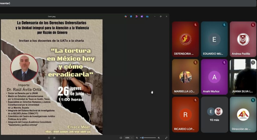 La Defensoría de los Derechos Humanos y la Unidad Integral para la Atención a la Violencia por Razón de Género de la Universidad Autónoma de Tlaxcala (UATx) organizaron la conferencia la tortura en México hoy y como erradica, que impartió el Doctor Raúl Ávila Ortiz, como parte de la campaña #MéxicoSinTortura2025, impulsada por el Gobierno de México y la Subsecretaría de Derechos Humanos, Población y Migración.