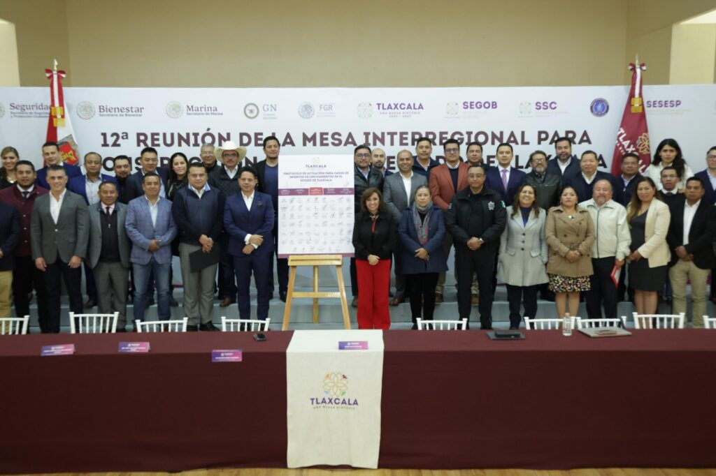 Durante la 12° reunión de la Mesa Interregional para la Construcción de Paz del estado, el Gabinete de Seguridad, presidentas y presidentes municipales firmaron la actualización del Protocolo de Actuación para casos de Linchamiento en Tlaxcala; además, abordaron temas para la atención a mujeres y grupos vulnerables; el plan de acción para la acción, prevención, atención y seguimiento de niñas adolescentes madres embarazadas y acciones colectivas en cuanto a medio ambiente.