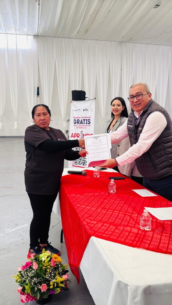 El Instituto Tlaxcalteca para la Educación de los Adultos (ITEA) entregó 80 certificados de primaria y 14 de secundaria a personas adultas y jóvenes del municipio de Contla de Juan Cuamatzi.