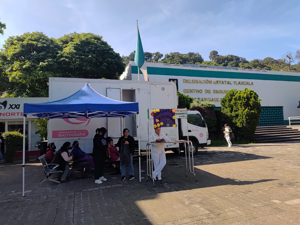 Durante julio su itinerario del mastógrafo móvil será el siguiente: en la HGZ/UMF No. 2, en Apizaco, los días 7, 12, 14, 19, 21, 26 y 28; en la UMF No. 5, en Xicohtzinco 5, 11, y 25; en la UMF No. 6, en Panzacola, los días 15 y 22.