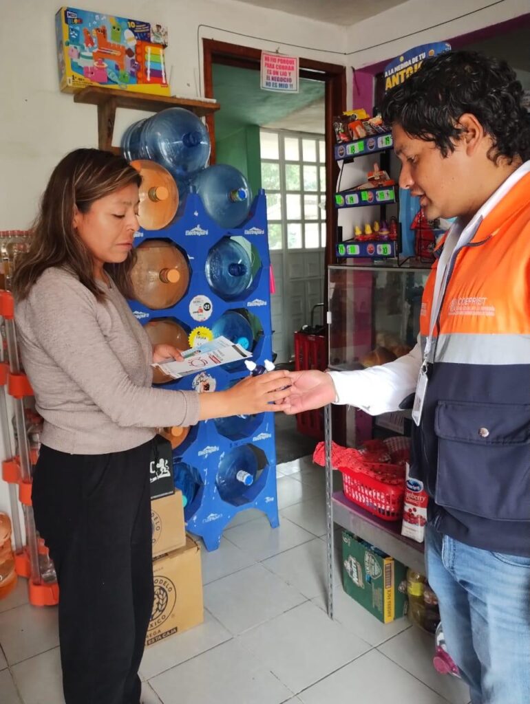 Además, se distribuyeron 200 frascos de plata coloidal a establecimientos y población en general para la desinfección doméstica del agua en zonas que no cuentan con cloración constante o acceso a sistemas formales de potabilización.