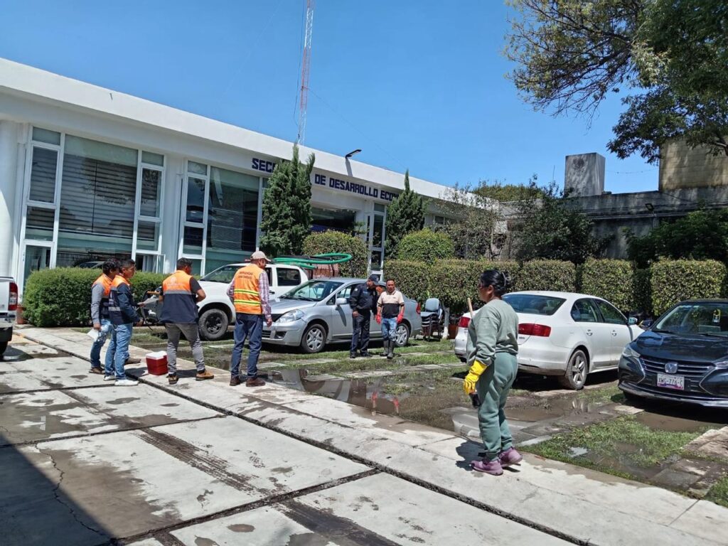 En las Secretarías de Desarrollo Económico (Sedeco) y de Gobernación (Segob), ambas afectadas por la inundación, se desinfectaron cisternas con un total de 60 mil litros, mediante cartuchos rústicos, y se brindó asesoría sobre limpieza y desinfección de pisos y paredes en las oficinas públicas.