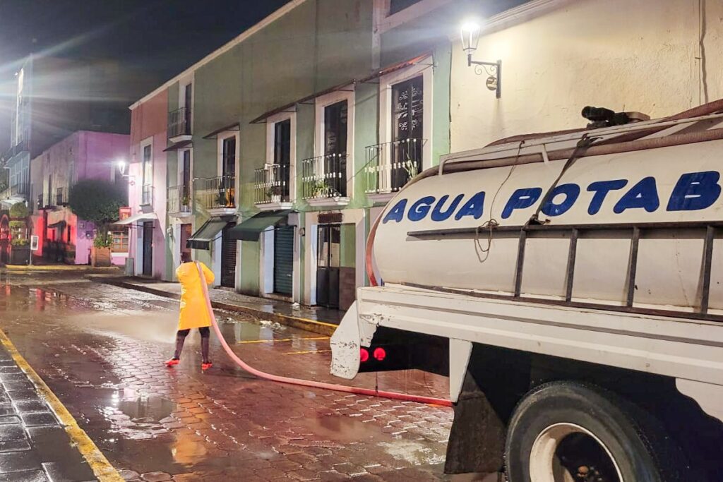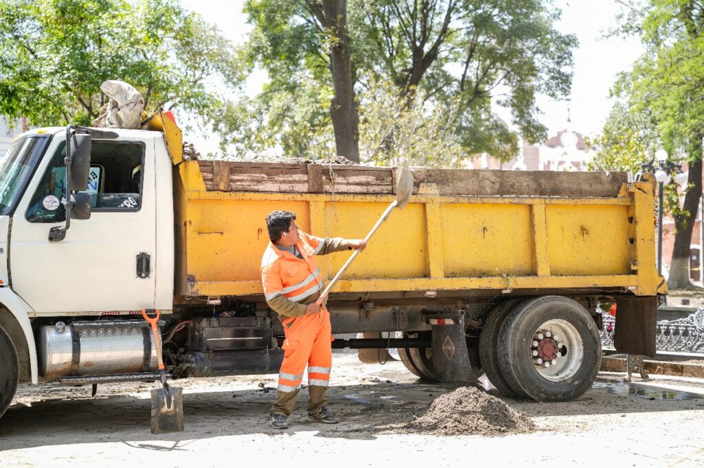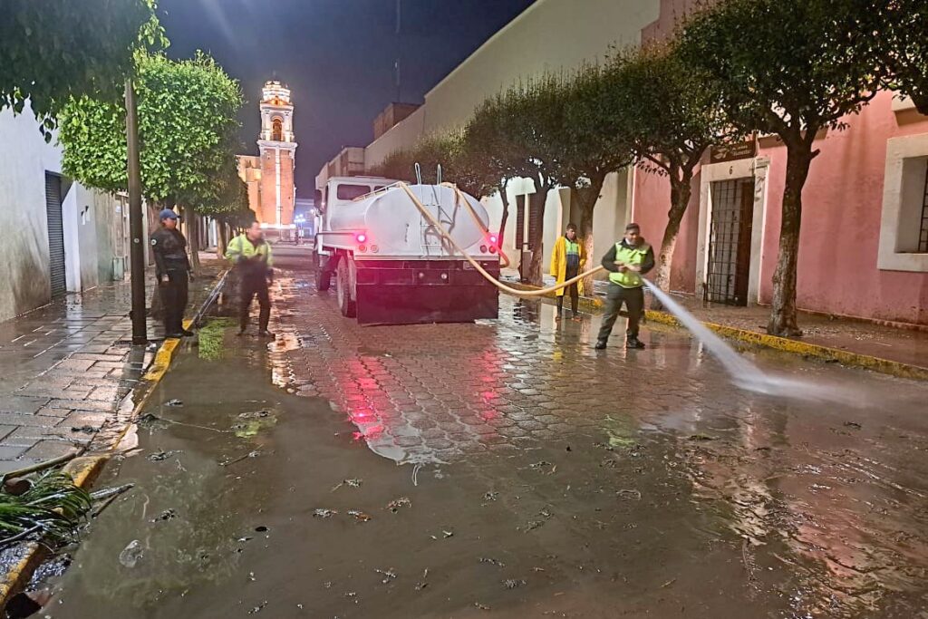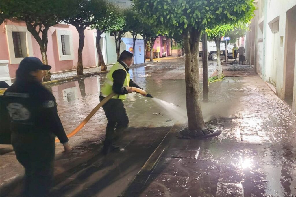 También asearon las plazas principales, calles y banquetas, además recogieron lodo, ramas y hojas de árboles. Asimismo, retiraron residuos sólidos y comenzaron la reparación de hundimientos de adoquín y asfalto.