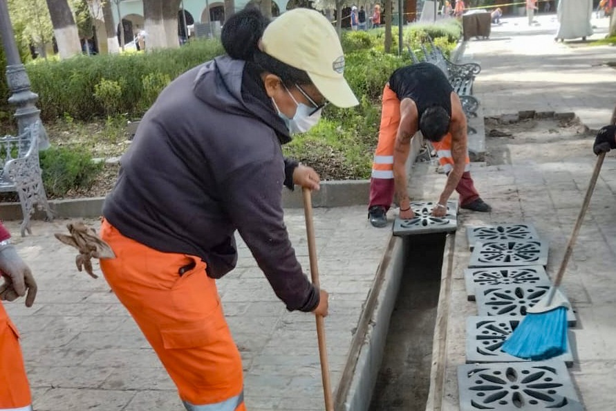 Las acciones continuaron en la parte baja de la barranca de Xico, a la altura de la calle del Vecino con Independencia. También se limpiaron rejillas en la Plaza de la Constitución, como una forma de contribuir al desfogue pluvial hasta en tanto se concretan los trabajos ejecutivos para atender integralmente las afectaciones que causan las lluvias