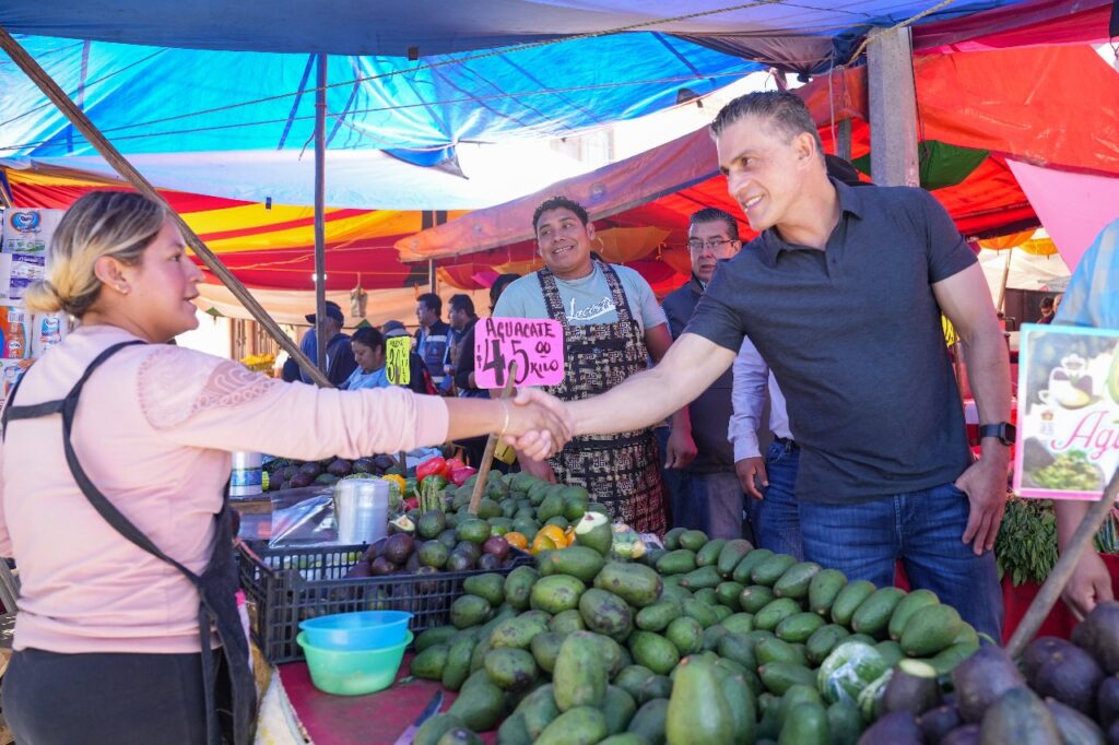 Acompañado por titulares de distintas áreas del Ayuntamiento, el alcalde saludó personalmente a hombres y mujeres dedicados a la venta de frutas, verduras, abarrotes, comida y ropa, así como a amas de casa, con quienes platicó sobre las condiciones del lugar y del entorno urbano. Entre los planteamientos más frecuentes destacaron la mejora de calles, el alumbrado público y la necesidad de reforzar la seguridad.