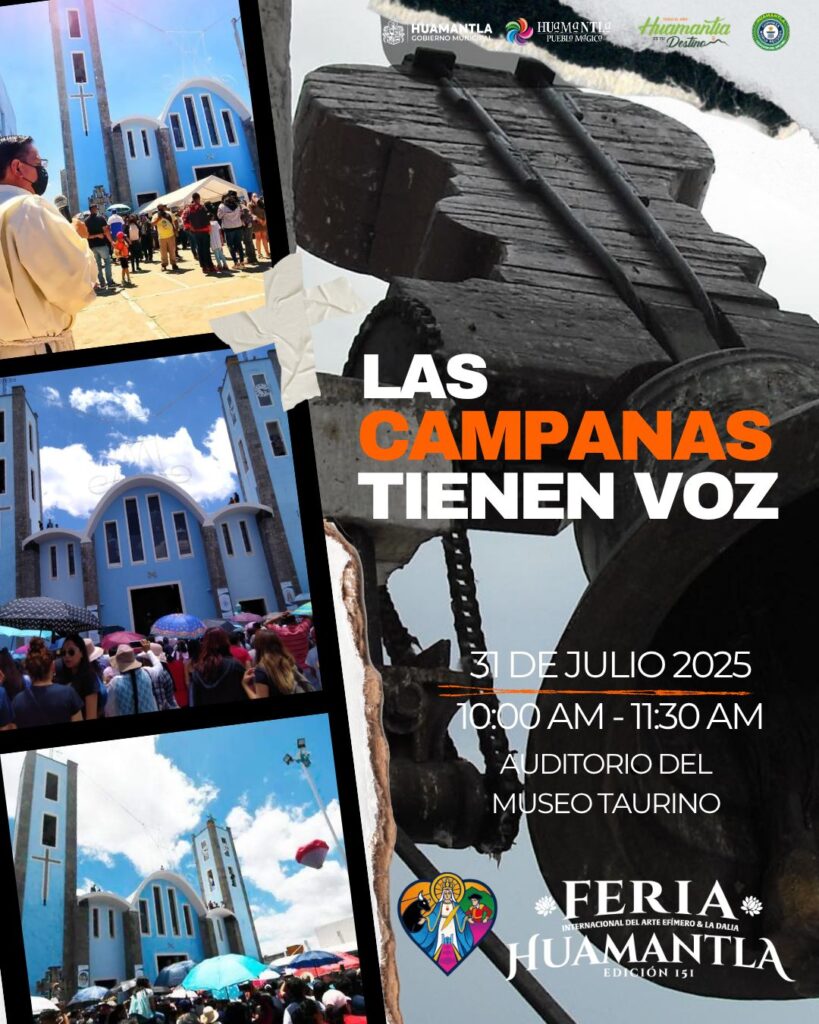 En el marco de la Feria Internacional del Arte Efímero y la Dalia 2025, el próximo jueves 31 de julio a las 10:00 de la mañana se llevará a cabo el conversatorio titulado “Las Campanas Tienen Voz”, en el auditorio del Museo Taurino de Huamantla.