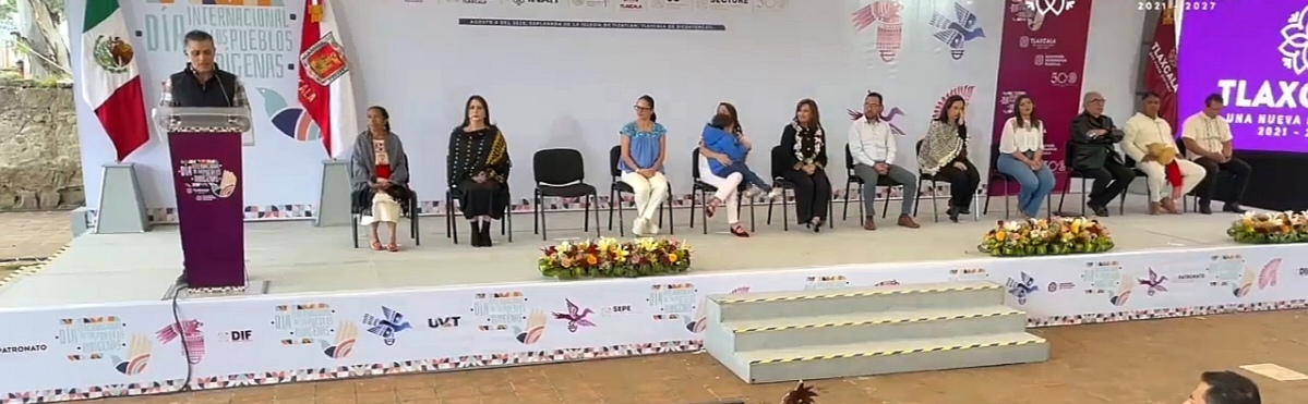 Desde la explanada de la iglesia de San Esteban Tizatlán, se llevó a cabo el acto conmemorativo por el Día Internacional de los Pueblos Indígenas. El evento, encabezado por la gobernadora del estado, Lorena Cuéllar Cisneros, se realizó con actividades culturales, venta de artesanías y la participación de representantes de comunidades indígenas, así como autoridades estatales y municipales.
