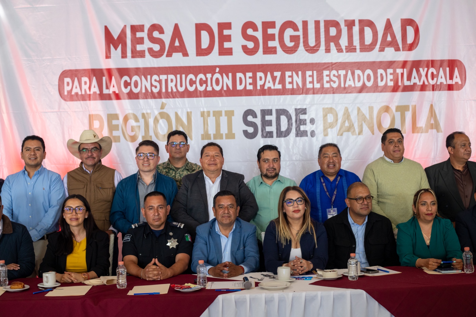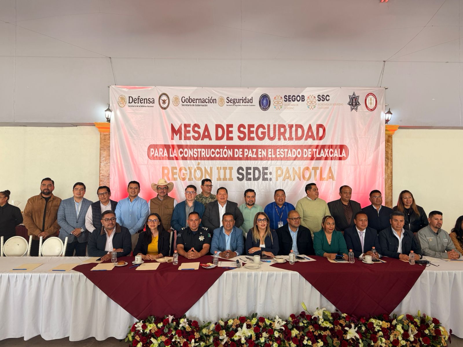 Con el objetivo de reforzar las acciones coordinadas para garantizar la paz y la tranquilidad de la ciudadanía, este día se llevó a cabo en el municipio de Panotla la Mesa de Seguridad para la Construcción de la Paz, Región III, con la participación de representantes de 27 municipios.