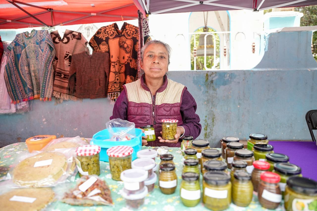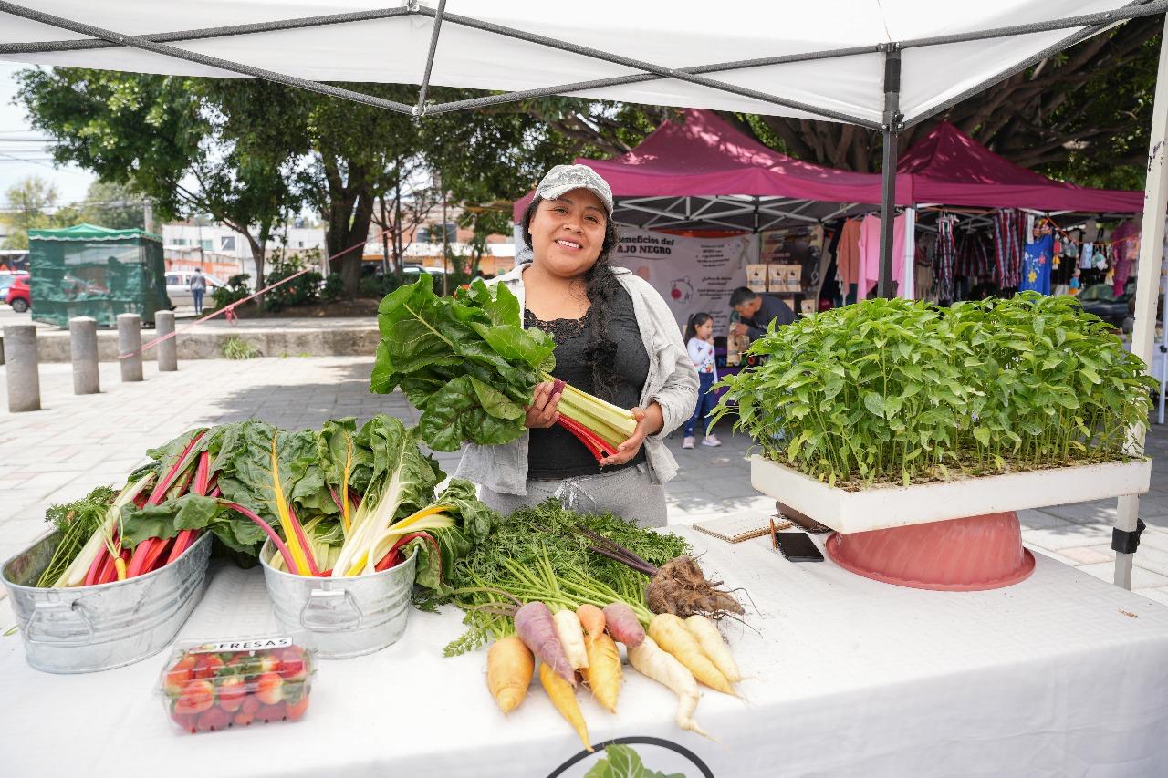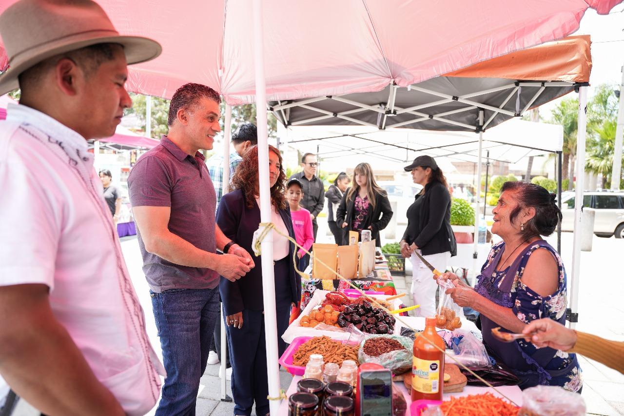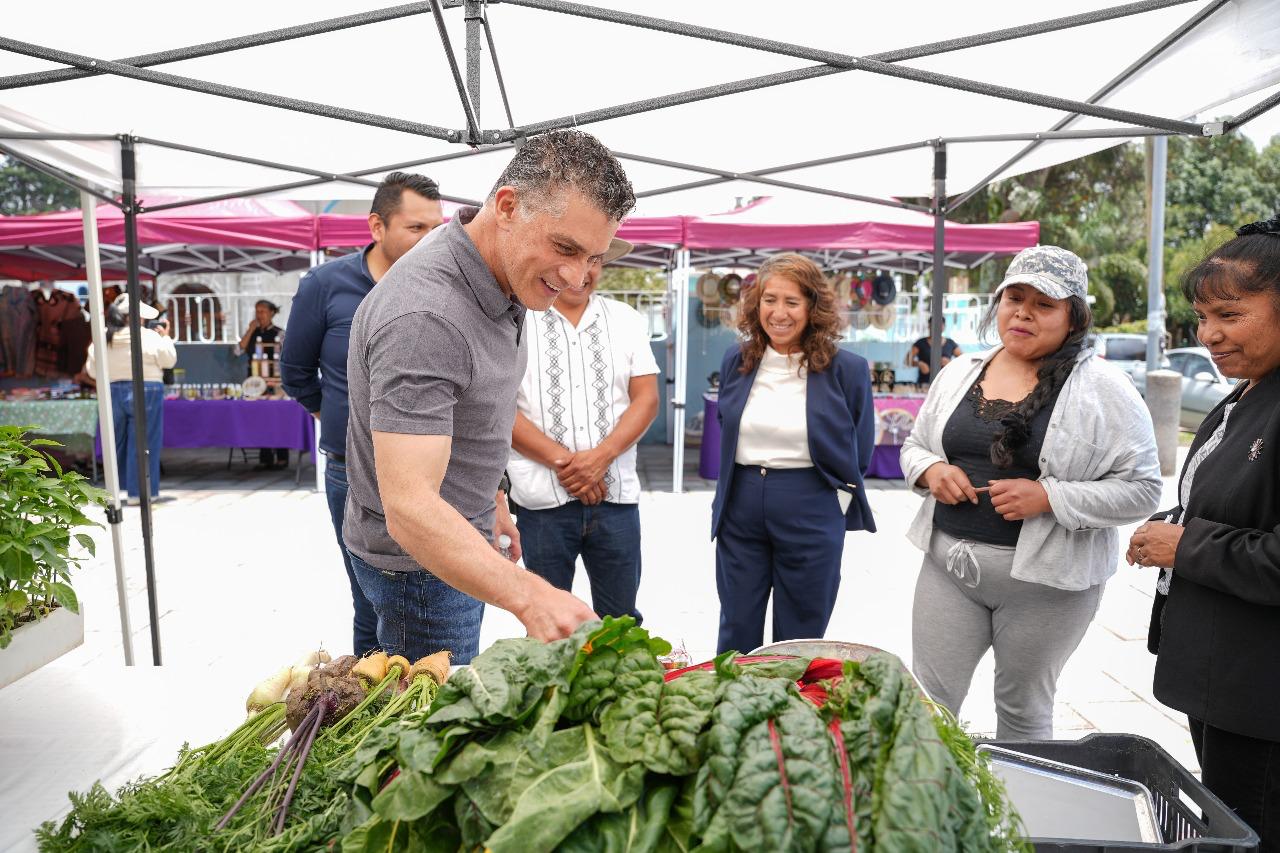 Durante su visita, el alcalde también recorrió el Mercado Social que su gobierno organiza cada quince días en la explanada de dicha comunidad, donde artesanos y productores locales ofrecen artesanías y alimentos orgánicos.