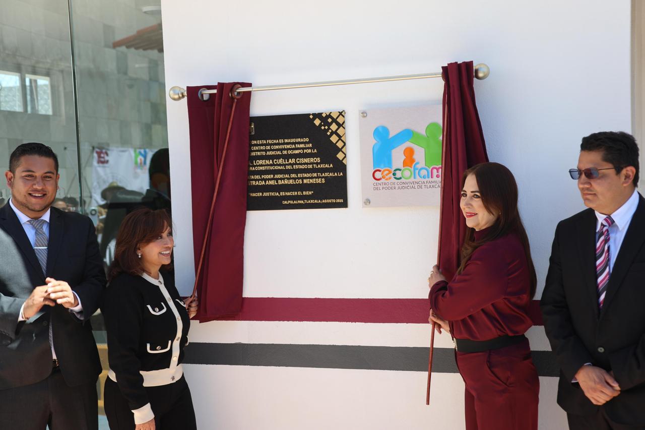 La gobernadora Lorena Cuéllar Cisneros visitó Calpulalpan, donde participó en la inauguración del Centro de Convivencia Familiar del Distrito Judicial de Ocampo y la develación de placa por el equipamiento de la Sala de Oralidad, además de fungir como testigo de honor en la firma del convenio de colaboración, entre el Poder Judicial y el Municipio de Calpulalpan, para asegurar la vigilancia y la atención ante contingencias del nuevo Centro.