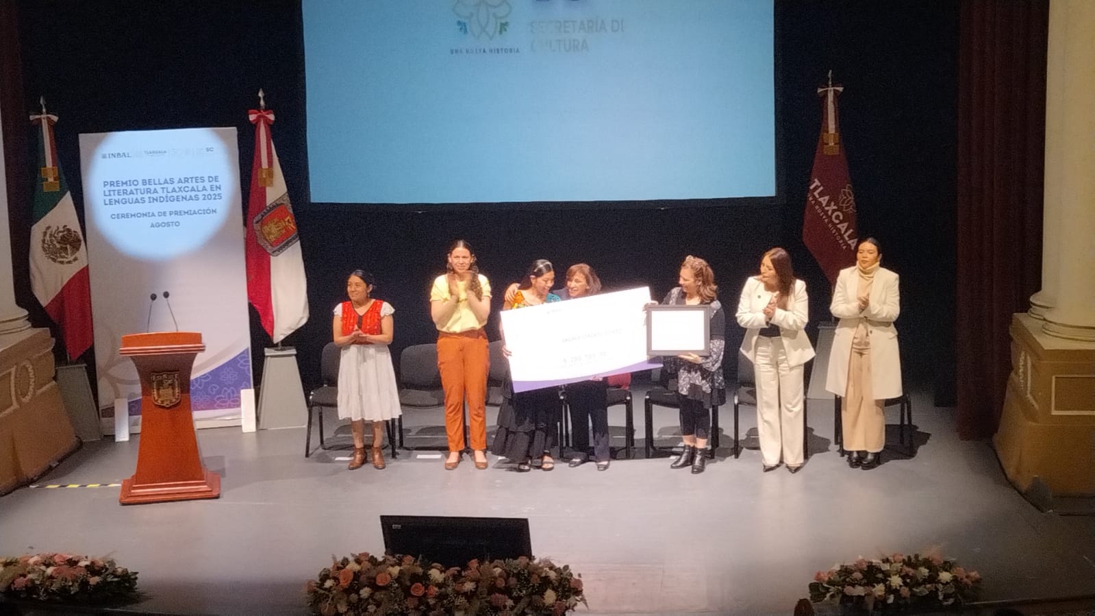 En el Teatro Xicohténcatl se realizó la ceremonia de entrega del Premio Nacional Bellas Artes de Literatura Tlaxcala en Lenguas Indígenas 2025, reconocimiento que en esta primera edición fue otorgado a Andrea Lorenzo Gómez por su obra «Xaga tlhaz», escrita en zapoteco.