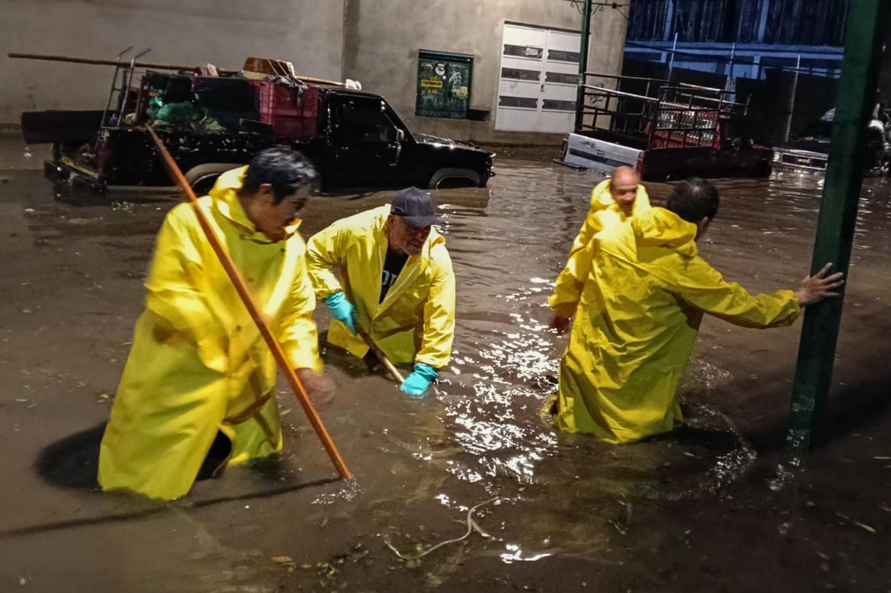 También se atendió la zona del mercado y de Artesanías, así como la calle 20 de noviembre y Porfirio Díaz, donde la basura obstruyó el flujo del agua y generó encharcamientos que afectó a tianguistas y vehículos particulares, de ahí que se procedió a la limpieza de las rejillas para agilizar el desfogue del agua.
