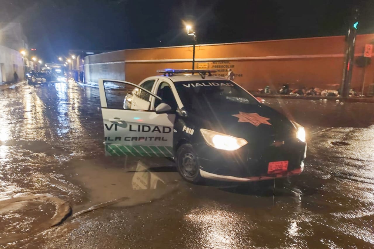 Coordinados por el área de Protección Civil municipal y de la Dirección de Seguridad Pública, personal de Obras, Servicios Públicos y la Comisión de Agua Potable y Alcantarillado (CAPAM), entre otras, brindó la atención en calles céntricas de la ciudad, como la vía que pasa por abajo del Puente Rojo, zona en la que también se registró la caída de un árbol, por lo que se procedió a su acordonamiento hasta en tanto se lleva a cabo su retiro.