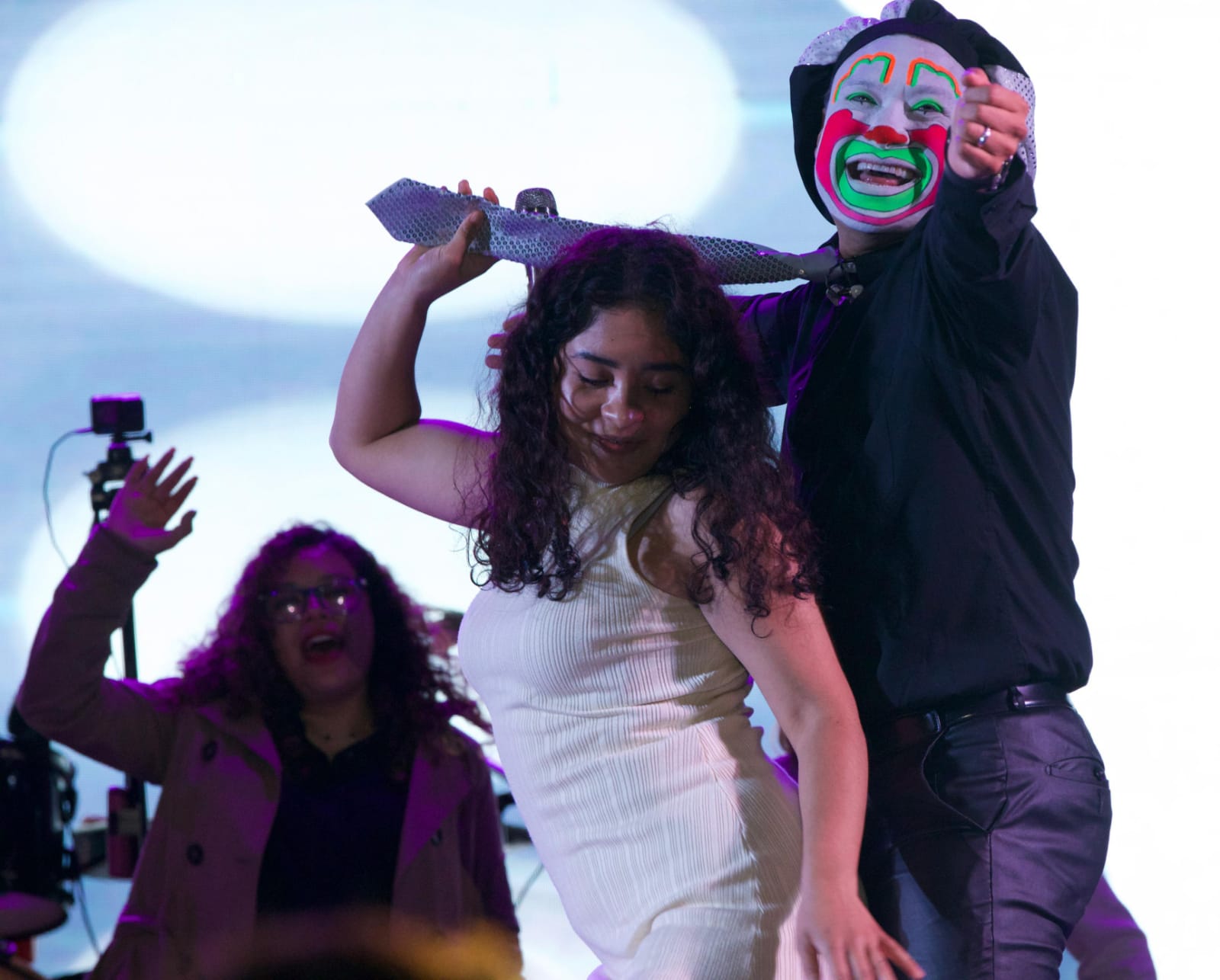 Durante su show, invitó a personas del público al escenario, lo que añadió un elemento de diversión y se convirtió en un momento clave de la noche.