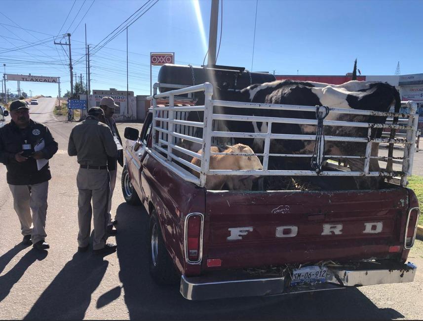 Con la participación de 31 oficiales y personal técnico, así como 14 patrullas de la Guardia Nacional, la Secretaría de Seguridad Ciudadana de Tlaxcala (SSC) y el Comité Estatal de Fomento y Protección Pecuaria, se llevó a cabo la revisión de vehículos que transportan ganado entre ambas entidades.
