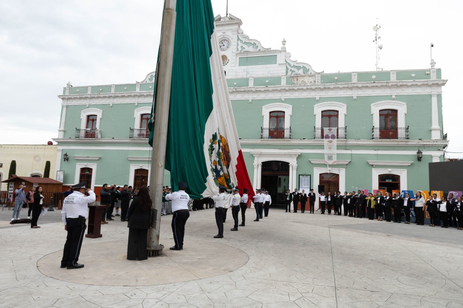 El acto cívico contó con la participación de autoridades municipales y educativas, así como la presencia de la comunidad escolar y ciudadanía en general.