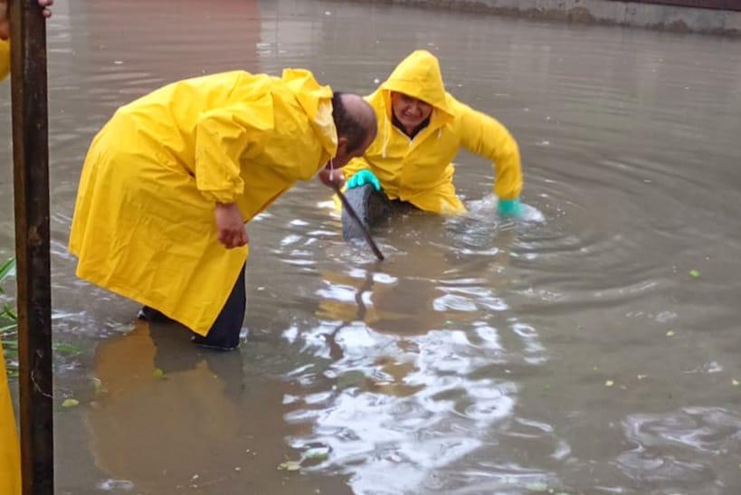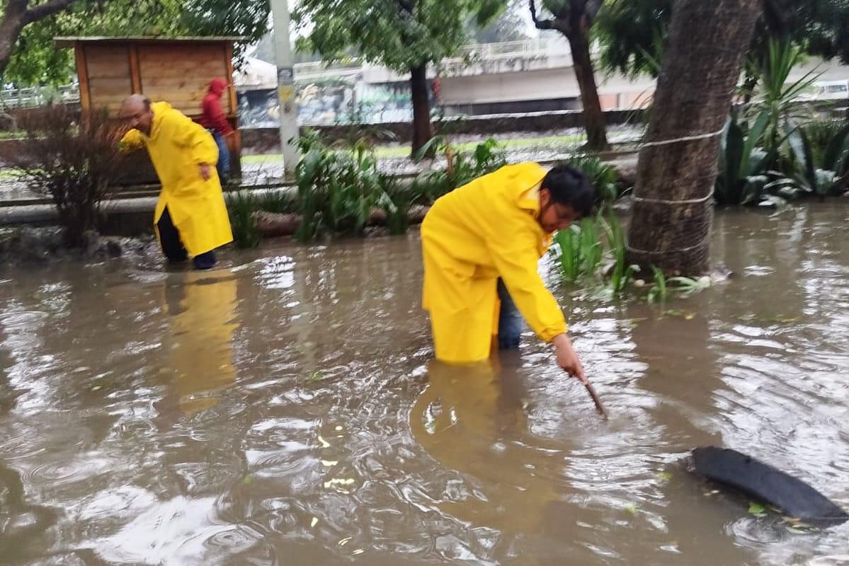Bajo la coordinación de Protección Civil y la Policía Municipal, los brigadistas realizaron labores de destape de drenajes, acordonamiento de zonas de riesgo y desfogue de agua en áreas encharcadas, a fin de garantizar la seguridad de vecinos y transeúntes.