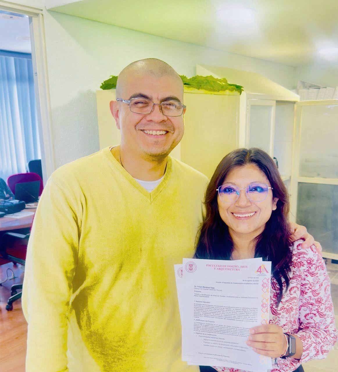 La iniciativa se trabaja con el Hospital Infantil de Tlaxcala, que está bajo la dirección del Doctor Felipe Mendoza Vega a quien se le presentó el proyecto que coordina la Maestra Fátima de la Fuente Acoltzi, corresponde al trabajo del Seminario de Integración de Praxis Profesional y busca vincular el diseño con la responsabilidad social en atención a una problemática específica.