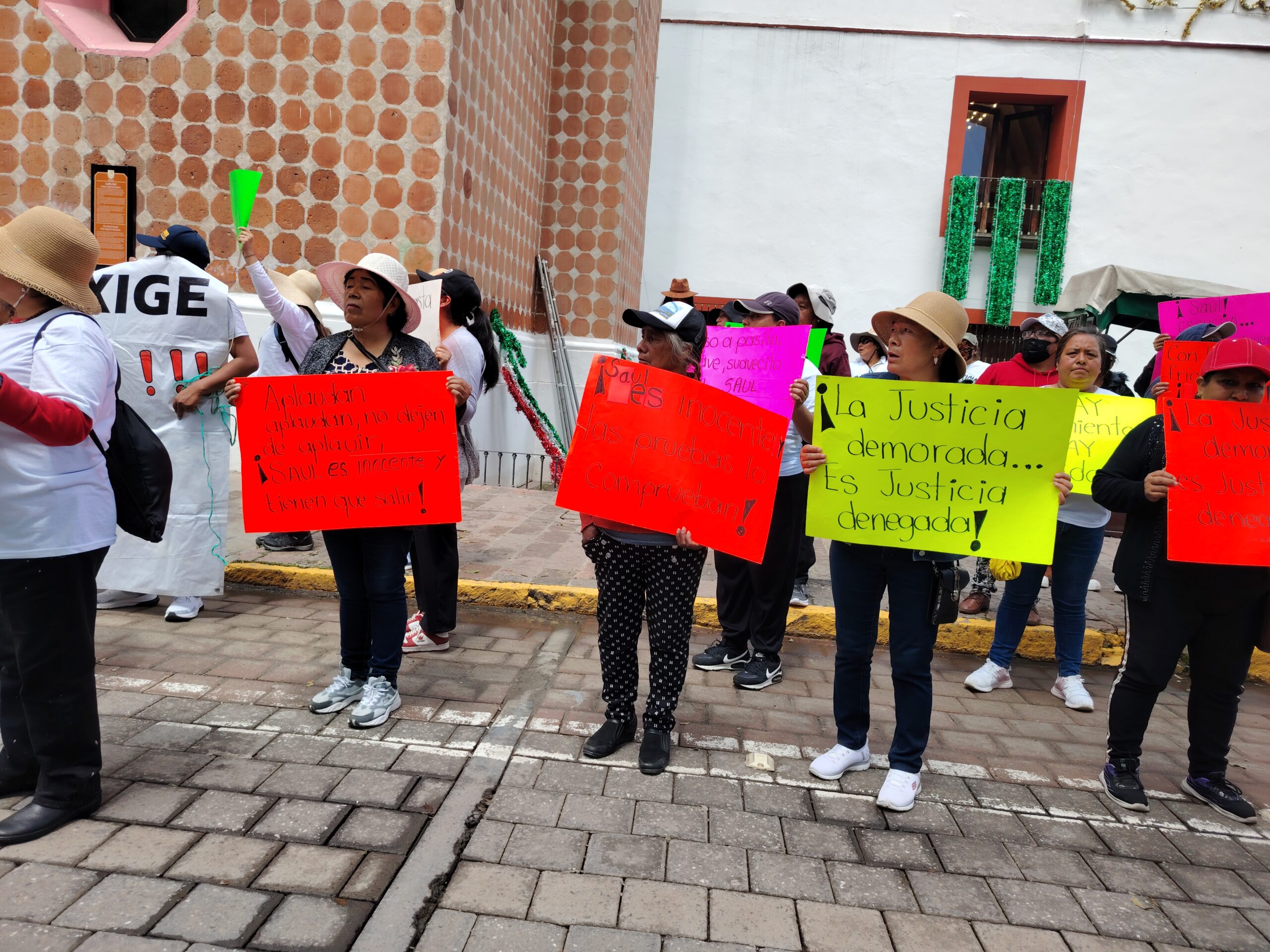 Por la mañana, familiares, vecinos y colectivos se manifestaron en las calles de la ciudad de Tlaxcala para exigir la liberación de Saúl «N», expresidente de comunidad de San Pedro Tlalcuapan, municipio de Santa Ana Chiautempan. Con pancartas, lonas y consignas recorrieron el centro histórico hasta llegar a la plaza principal.