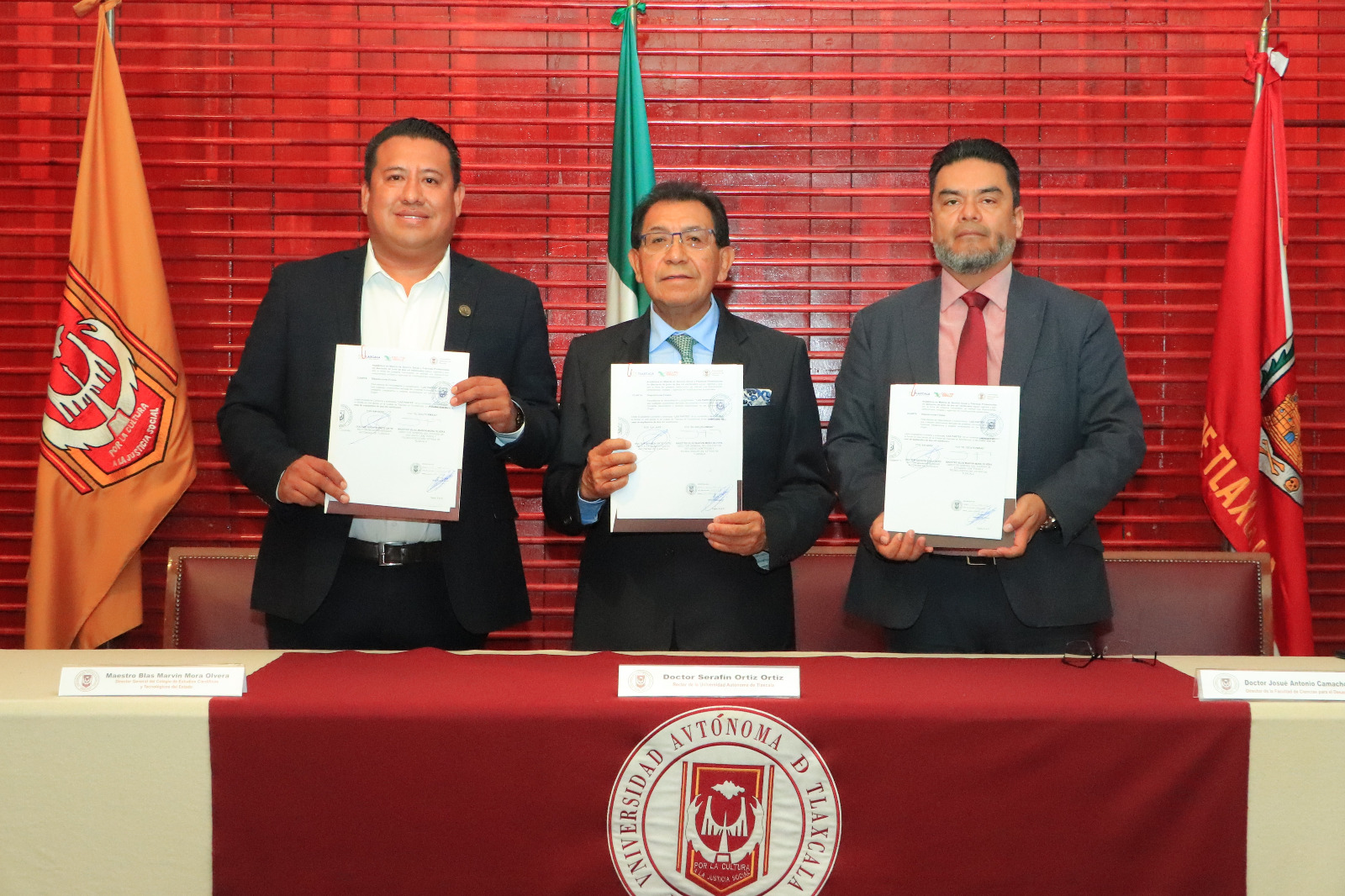 En sintonía con la estrategia del Gobierno Federal para fortalecer la educación media superior, se genera un escenario favorable para el crecimiento de la matrícula universitaria en México, afirmó el Doctor Serafín Ortiz Ortiz, Rector de la Universidad Autónoma de Tlaxcala (UATx), durante la firma de ratificación de convenio con el Colegio de Estudios Científicos y Tecnológicos del Estado de Tlaxcala (CECyTE–EMSaD), encabezado por el Maestro Blas Marvin Mora Olvera, Director General.