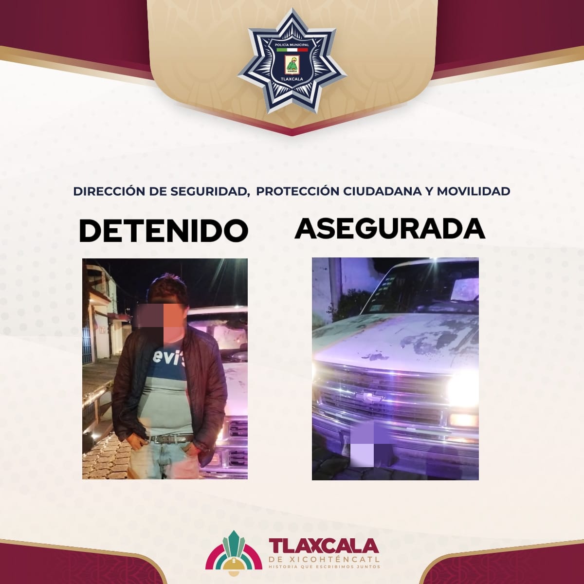 La policía municipal de Tlaxcala aseguró en la comunidad de Santa María Ixtulco a un hombre con una camioneta vinculada a diferentes hechos delictivos, luego de ser detectada a través de los arcos de seguridad.