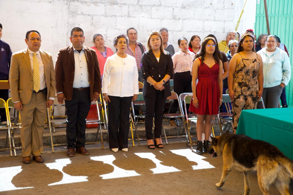 El acto inició con el izamiento de la Bandera Nacional en el nuevo asta bandera donado por autoridades educativas, procedió la entonación de los himnos de México y Tlaxcala, reafirmando los valores de identidad y unidad que fortalecen a la comunidad.