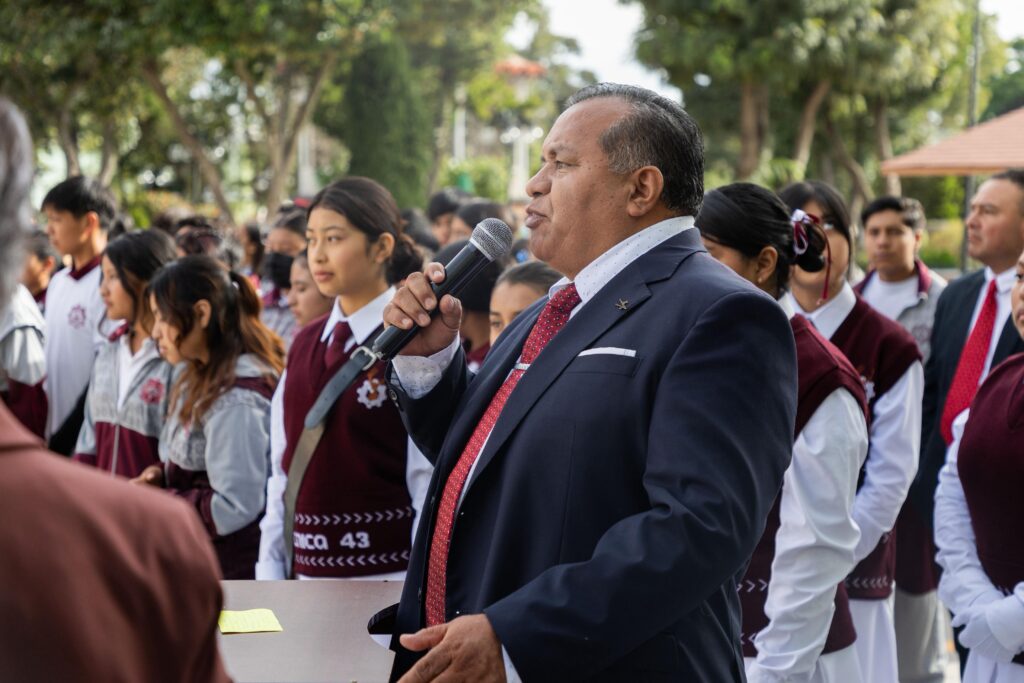 La ceremonia contó con la destacada participación de las y los alumnos de la Secundaria Técnica No. 43, quienes, con entusiasmo y respeto, prepararon su intervención para fortalecer los valores cívicos entre la juventud y la comunidad. Su presencia y compromiso reafirmaron el papel de las instituciones educativas en la formación de ciudadanos responsables y orgullosos de su nación.