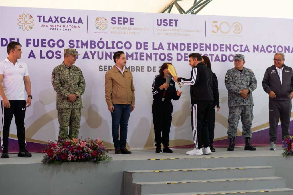 Posteriormente, las autoridades municipales se trasladaron a Huamantla para encender el pebetero que mantendrá vivo el fuego en el municipio, como símbolo de identidad y unidad nacional.