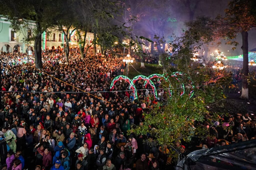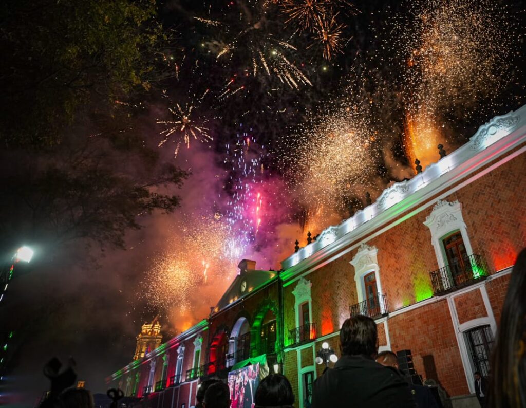 Los vítores se multiplicaron como eco en la Plaza de la Constitución, entre luces, el sonido de la campana y un cielo iluminado con fuegos pirotécnicos que pintaron de tricolor la noche tlaxcalteca.