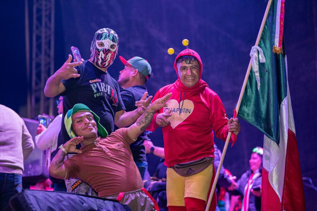 El alcalde y su familia, junto con integrantes del Ayuntamiento y la síndico, regidoras y regidores, así como presidentas y presidentes de comunidad, fueron testigos del espectáculo de luces pirotécnicas que iluminó el primer cuadro de la ciudad, y disfrutaron junto con la ciudadanía del baile popular, animado por Sonido Pirata y Los Welos de Aurelio Esparza, en una noche llena de unidad, alegría y orgullo patrio.