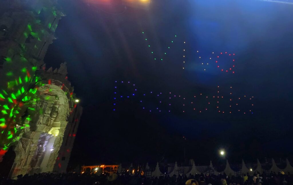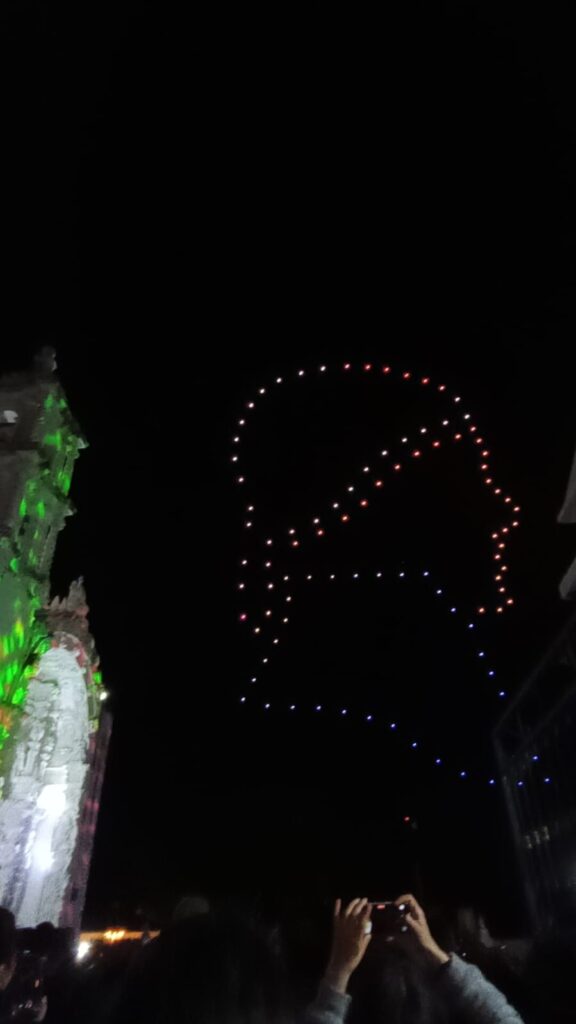 Uno de los momentos más emotivos e innovadores de la noche fue el espectáculo de drones, que iluminó el cielo con figuras alusivas a los símbolos patrios. Este show marcó un precedente histórico al disminuir el uso de pirotecnia, ofreciendo una alternativa más moderna, segura y sustentable, que dejó en los presentes un recuerdo inolvidable y un claro mensaje de compromiso con el medio ambiente y la salud de la ciudadanía.