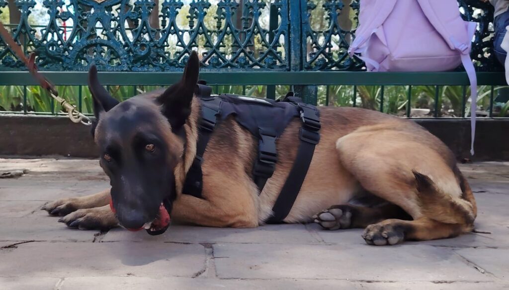 Intervención de un binomio canino, que colaboró en labores de búsqueda y rescate.