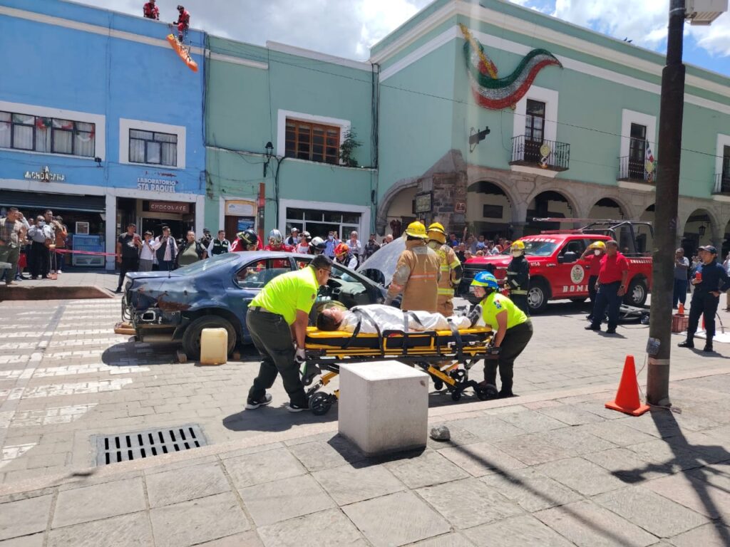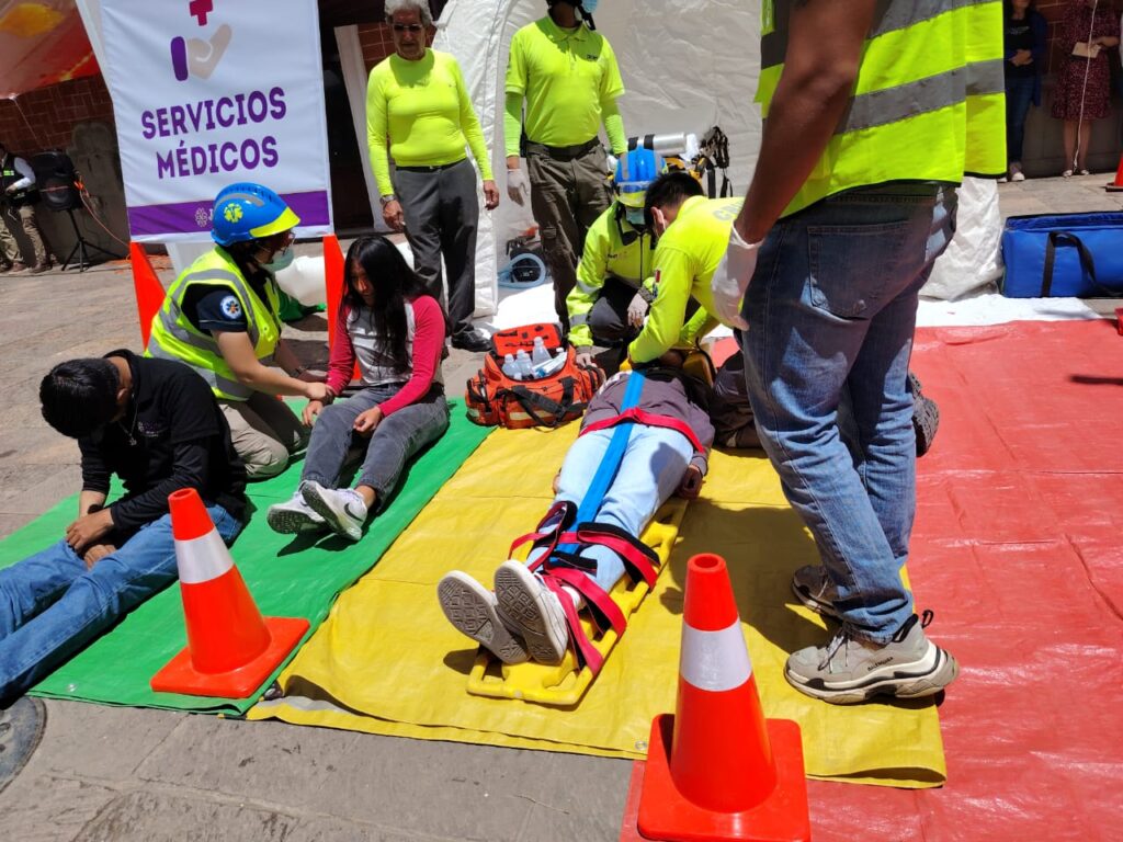Desde las primeras horas de la mañana, el Zócalo de Tlaxcala permaneció cerrado para dar paso a los preparativos del ejercicio coordinado por el C5i, la Sedena, la Guardia Nacional, Protección Civil, la Cruz Roja Mexicana y el CRUMT.
