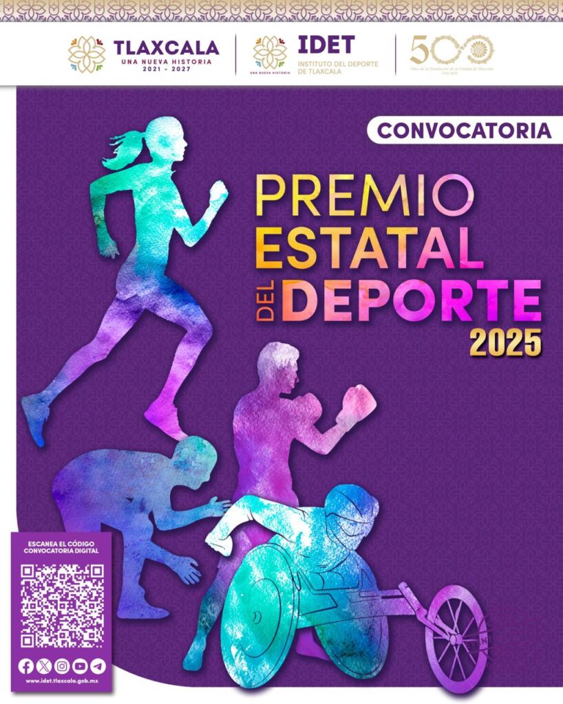 El Instituto del Deporte de Tlaxcala (IDET), en coordinación con la Comisión Nacional de Cultura Física y Deporte (Conade), lanzó la convocatoria para el Premio Estatal del Deporte 2025, con el propósito de reconocer a atletas, entrenadores y promotores que hayan destacado en el ámbito amateur.