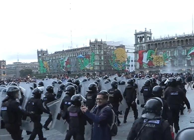 La agresión se concentró en el Centro Histórico y la plancha del Zócalo. Los encapuchados lanzaron proyectiles, cohetones, bombas molotov y piedras contra los uniformados, quienes intentaron contener el avance y proteger los edificios. La violencia resultó en que, al menos, 22 oficiales de policía resultaron heridos, aunque otros reportes elevan la cifra de afectados en este sector hasta 37 elementos con diversas lesiones, incluyendo quemaduras, de los cuales varios fueron trasladados a hospitales para recibir atención especializada.