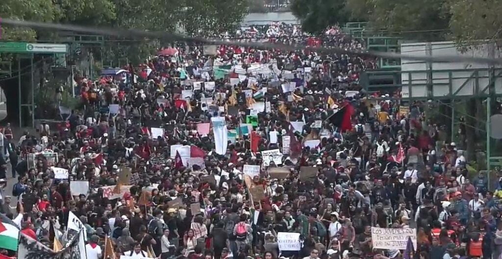 A pesar de los disturbios al final del recorrido, la mayor parte de la movilización, convocada por el Comité del 68 y compuesta por miles de estudiantes y activistas, se desarrolló de forma pacífica. Los participantes marcharon bajo la consigna «¡2 de octubre no se olvida!», sumando a sus demandas la exigencia de justicia por casos como el de Ayotzinapa y otras causas sociales. La manifestación concluyó con un mitin en el Zócalo, que se realizó en medio de la tensión generada por la confrontación.