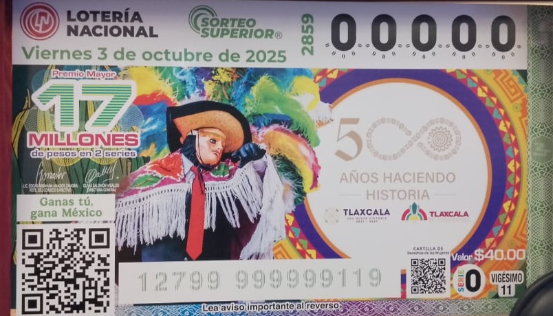 El Sorteo Superior 2859 entregó una bolsa total de 59 millones de pesos, con un premio mayor de 17 millones, consolidándose como un homenaje a cinco siglos de historia, identidad y orgullo colectivo de los tlaxcaltecas.